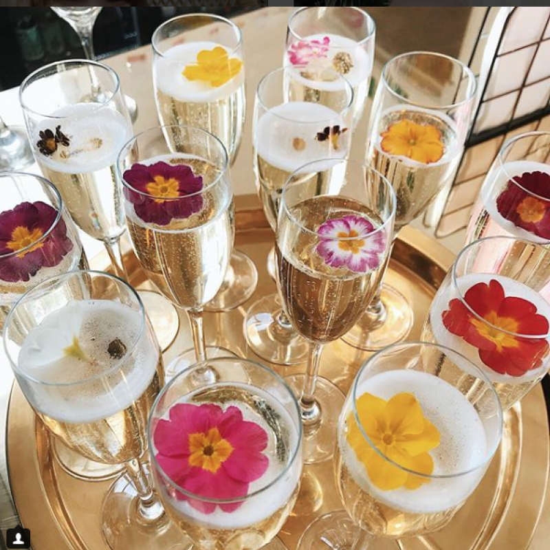 A l’apéritif, on glisse des fruits et des fleurs comestibles dans les flûtes ou on fait des glaçons fleuris !