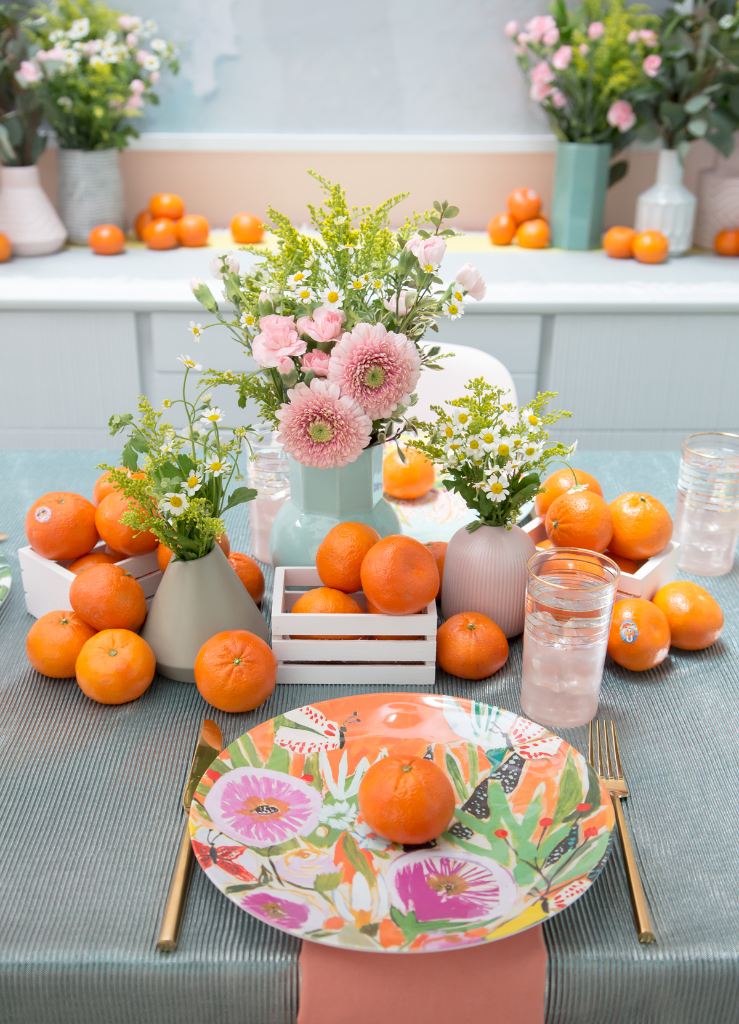 Pour les repas à table: Allez-y à fond ! Sortez la belle vaisselle, la vaisselle vintage dépareillée, les bougies et les vases de toutes sortes (pots de confitures, théières…) on n’oublie pas les serviettes colorées dans les assiettes et les fleurs ou fruits en centre de table !